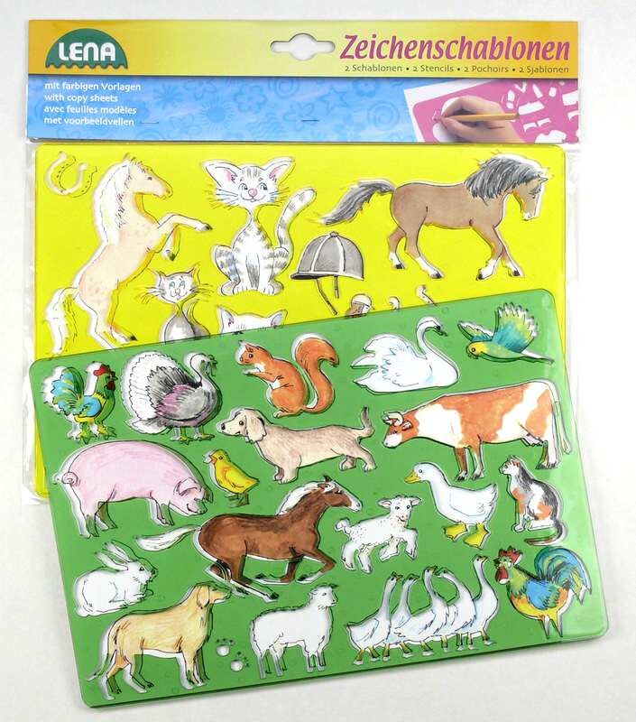 Kreslící šablonky s motivem koní a koček. Balení obsahuje 2 x šablonku o velikosti 27 x 23 cm.