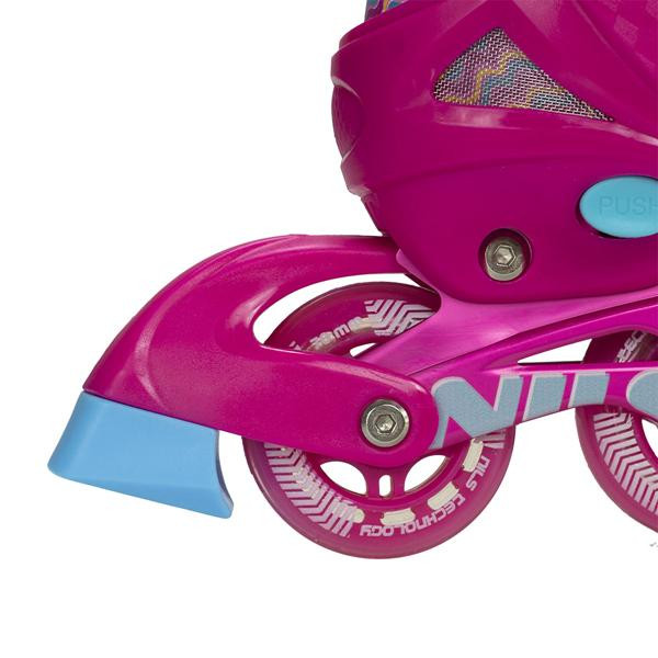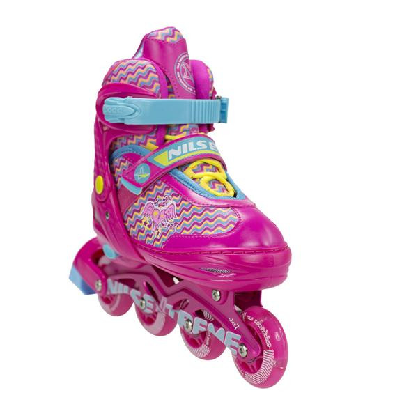 Nils Extreme NJ4605A jsou kolečkové brusle sloužící k rekreační jízdě pro začátečníky a mírně pokročilé. Bota je lehká, odolná a zajišťuje bezpečnost při jízdě. Jedná se o model s nastavitelnou velikostí, kdy každá brusle má na výběr ze 4 rozměrů.