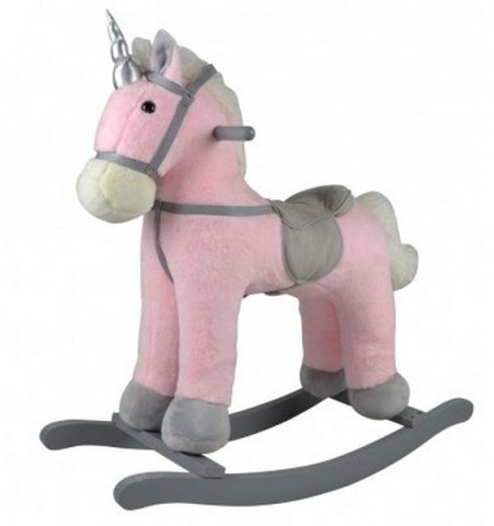 Teddies Kůň houpací růžový jednorožec plyš na bat. 71cm se zvukem a pohybem