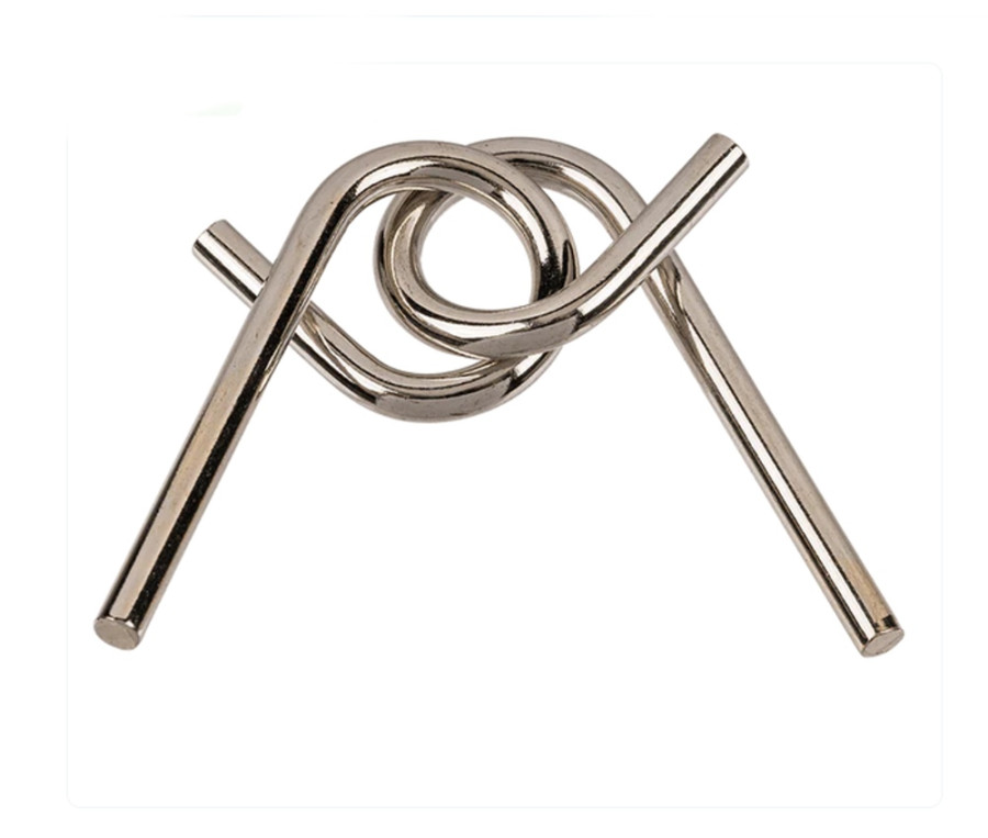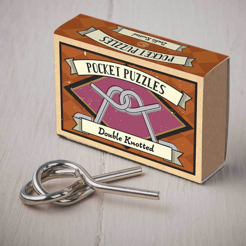 Hezky balený kovový hlavolam v retro krabičce, která se podobá balení zápalek. Balení hlavolamu obsahuje hlavolam uzel a návod jak odělit od sebe jeho části bez použiti násilí.