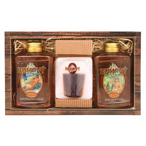 Dárkové balení rumové kosmetiky s vůní rumu je určena pro muže. Kosmetika obsažená v tomto balení se skládá ze sprchového gelu 300 ml., ručně vyráběného mýdla ve tvaru panáka rumu a olejové lázeně o objemu 300 ml..