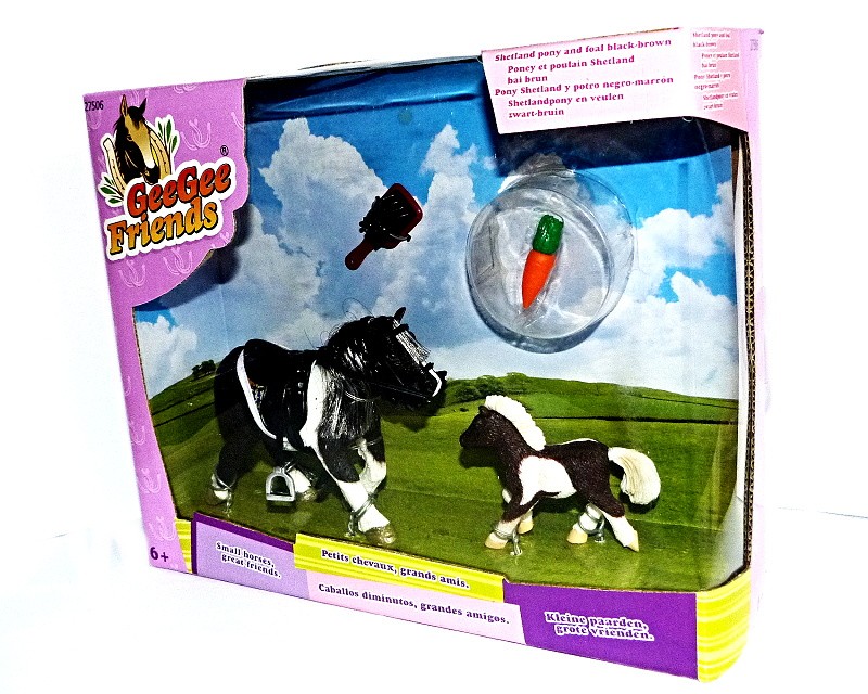Nádherný malý poník s hřívou a mládětem. Figurka poníka s drobným příslušenstvím. Balení obsahuje poníka s ohlávkou, sedlem a dekou, dále hříbě, jablko a kartáč. Hračka není vhodná pro děti do 3 let.