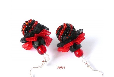 Šité náušnice 1549 Červeno-černé sukýnky