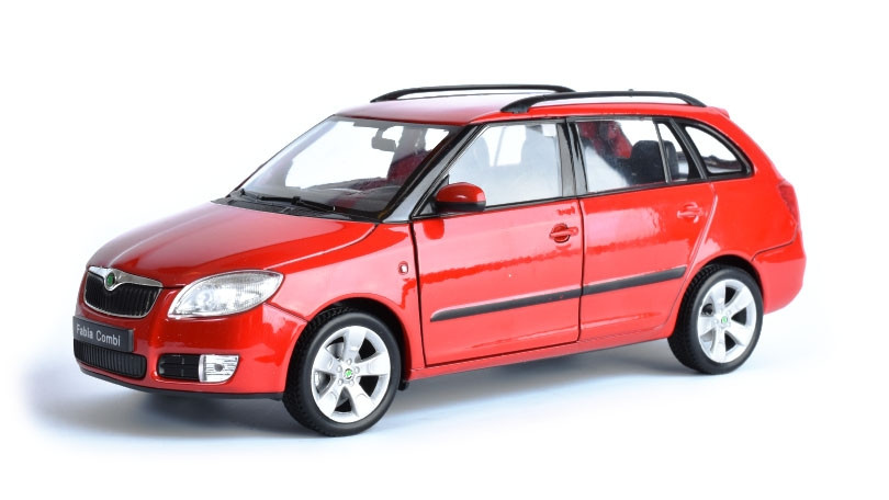 Kovový model auta Škoda Fabia Combi II je měřítku 1:24. Model má kovové osy kol a detailní zpracování karoserie včetně interiétu vozu. Na modelu se otvírá přední dveře a kapota.