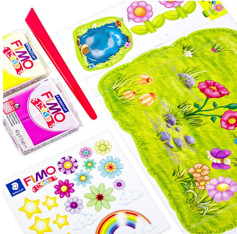 Každá sada obsahuje čtyři balení FIMO Kids, pozadí, které se hodí k danému tématu a brožurku s návodem. Modelovací hmota je skladována čistě a bezpečně chráněna od špíny a prachu ve znovu uzavíratelné krabici.