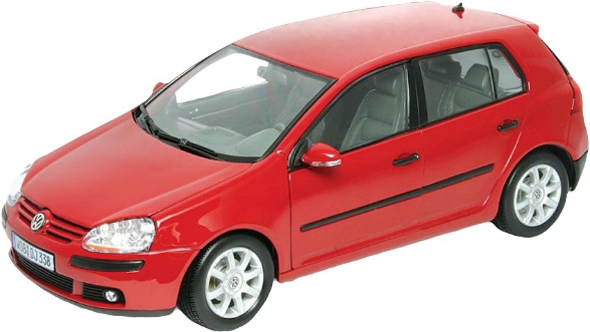 Kovový model auta Volkswagen Golf V je měřítku 1:24. Model má detailní zpracování karoserie včetně interiétu vozu. Na modelu se otvírá přední dveře a kapotu motoru.