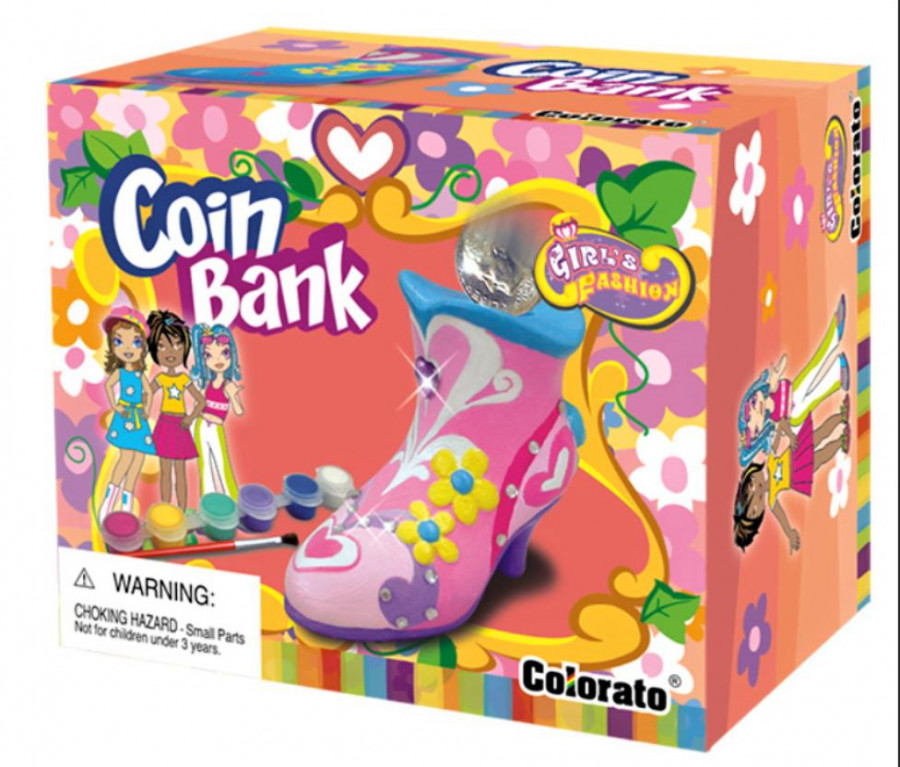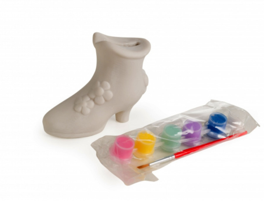 Dětská pokladnička ve tvaru Popelčina střevíčku. Střevíček si můžete vymalovat dle vlastní fantazie, které se meze nekladou.