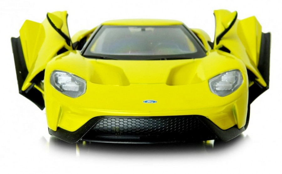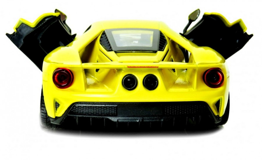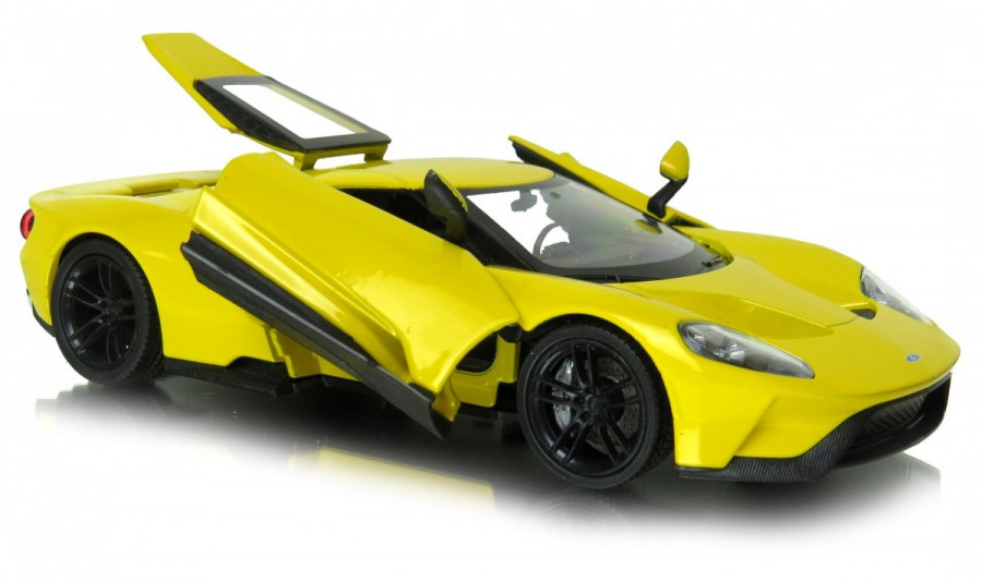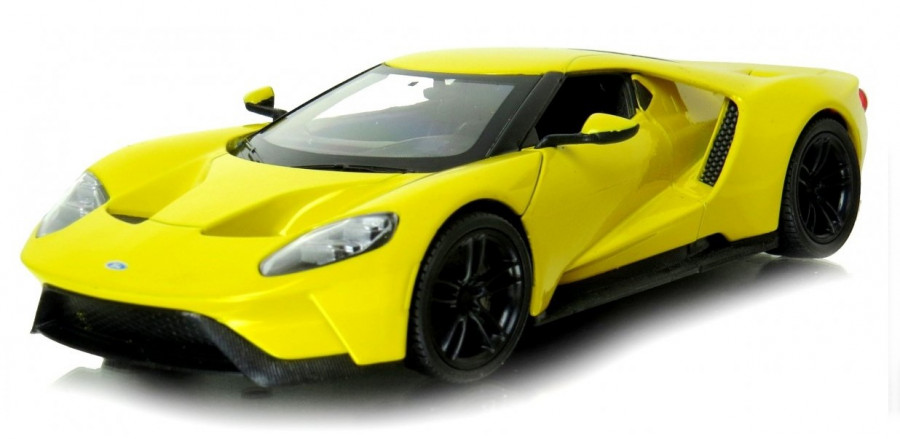 Kovový model auta Ford GT 2017 žluté barvy v měřítku 1:24 od výrobce hraček Maisto. Model má detailní zpracování karoserie včetně interiétu vozu. Na modelu se otvírají dveře s kapotou motoru.