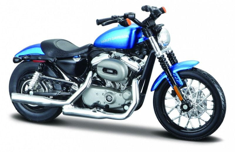 Model motorky Harley Davidson 2012 XL 1200N Nightster v měřítku 1/18, značky Maisto. Motorka má na délku cca. 13,5 cm a šířku cca. 5 cm (včetně řídítek).