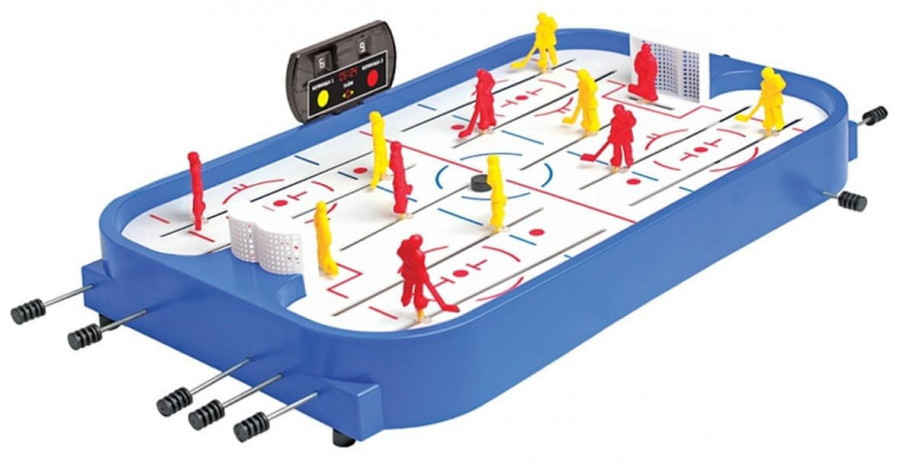 Stolní Hokej je velmi oblíbená stolní společenská hra nejen mezi dětmi, ale i dospělými. Hokej je neni určen pro děti do 3 let, jelikož obsahje malé části. Hokej má kovové táhla. Rozměr: 54x38x7cm.