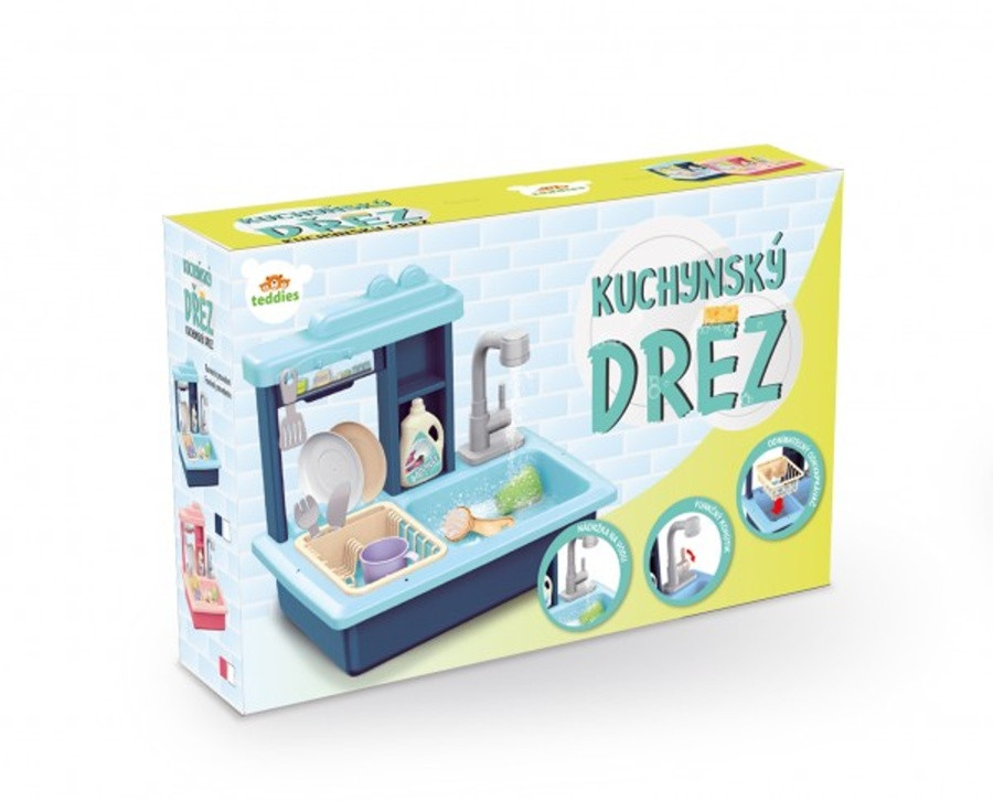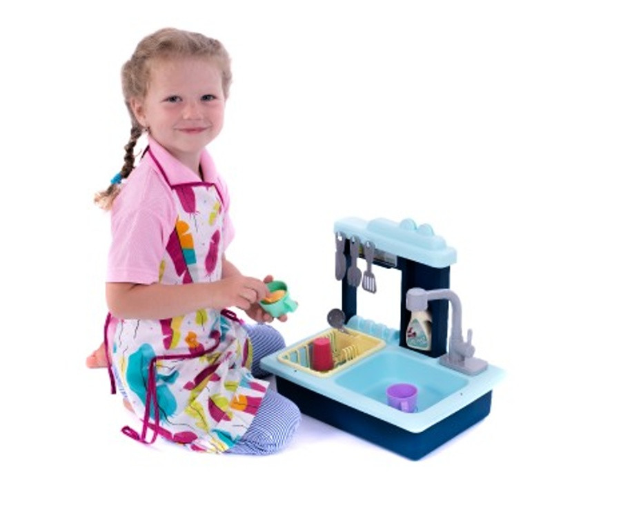 Máte doma malou kuchařku nebo kuchaře? Nabízíme vám dětský funkční dřez pro všechny pomocníky. Stačí jen naplnit dřez vodou a hned bude všechny bavit mytí nádobí. Dřez s funkčním kohoutkem, nádržkou na vodu, odnímatelným odkapávačem a doplňky, které musí být v každé kuchyňce. Vyrobeno z kvalitního plastu. Baterie 2x AA nejsou součástí balení. Rozměry balení 46 x 28 x 12 cm. Vhodné pro děti od 3 let.