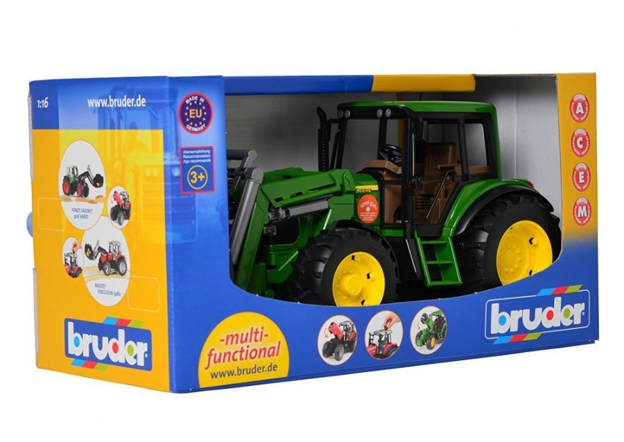 Traktor John Deere 6920 s přední lžící je kvalitní a propracovaná hračka Bruder. Traktor má otevíratenou kapotu, jeho součástí je prodloužený volant kterým se snadno ovládá.