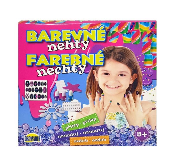 Dromader barevné nehty je zábavná sada k vytvoření originálních a hezkých nehtů. Balení obsahuje 3 laky na nehty, 12 umělých nehtů, 18 nálepek, mini kamínky, pilník na nehty, oboustranný lepicí list a návod. Přejeme vám a a vašim ratolestem veselou tvůrčí zábavu.