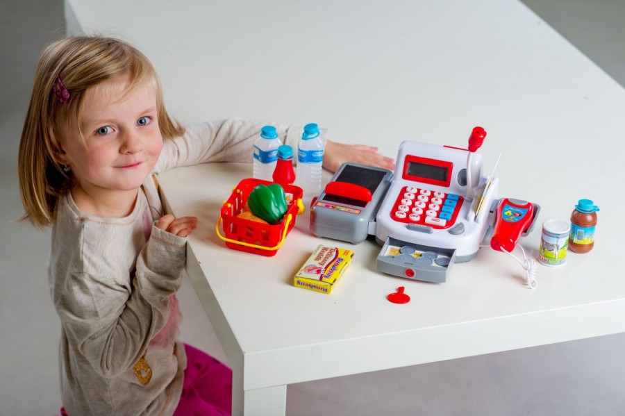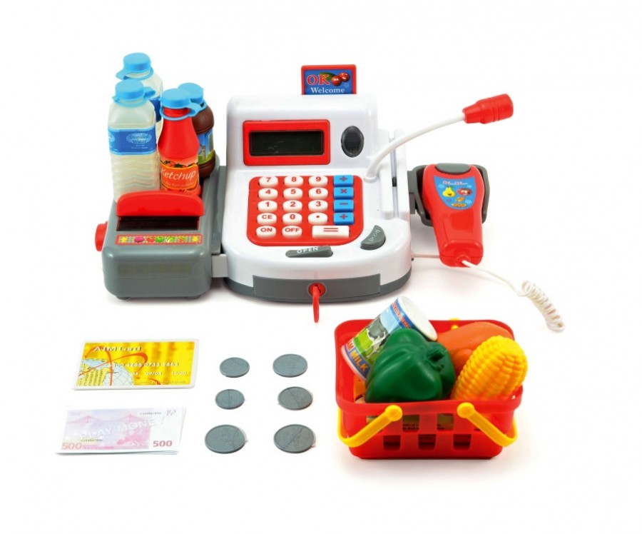 Dětská digitální pokladna se zvuky, čtečkou zboží, váhou a příslušenstvím nesmí chybět v žádném dětském pokojíčku.