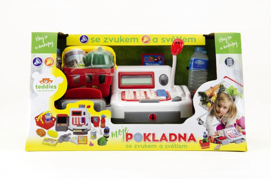 Teddies Dětská digitální pokladna s doplňky na baterie se zvukem a světlem