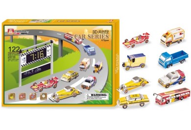3D puzzle sady automobilů umožní sestavit 8 modalů autíček o velikosti 13 x 8 x 3 cm ze 122 dílků. Jednotlivé dílky se nevystřihují, ale vylupují. Při sestavení nebudete potřebovat lepidlo. Věk 8+.