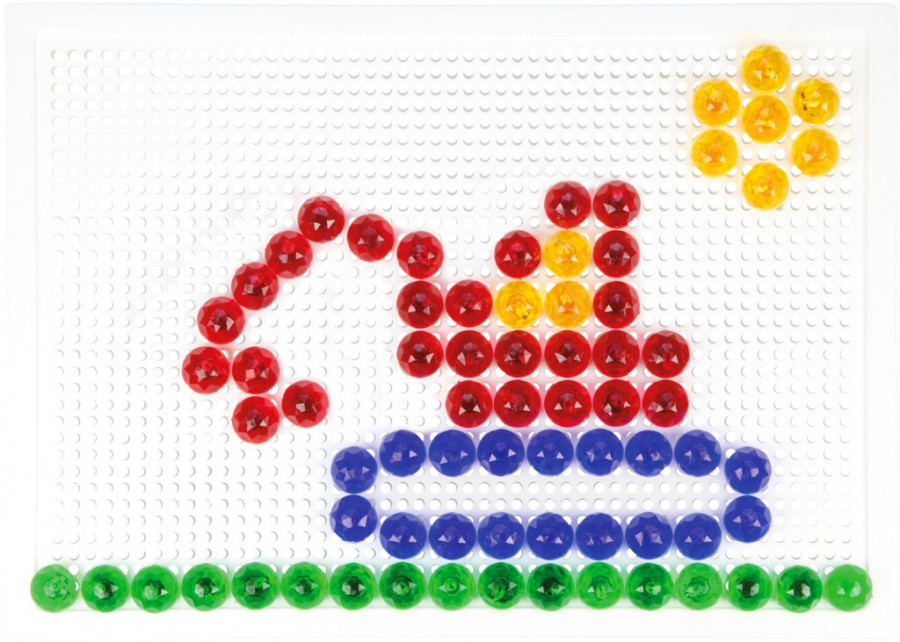 Mozaika velká má 120ks krystal kloboučků balených v plátěném pytlíčku. Velikost děrované desky 28x19,5cm. Dětská mozaika je pestrobarevná skládačka pro malé děti a je ideální pro trénink jemné motoriky.