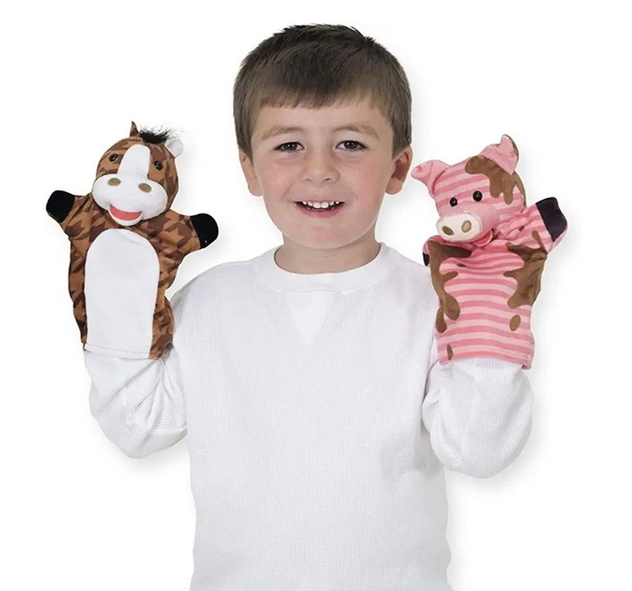 Zvířecí maňásci na ruku jsou originální plyšovou hračkou, která má tvar zvířátek z farmy a umožní Vám zahrát dítěti divadlo. Stačí si maňáska dát na ruku a představení může začít. Zvířecí maňásek na ruku ve čtyřech variantách: ovečka, prasátko, kravička a koník.