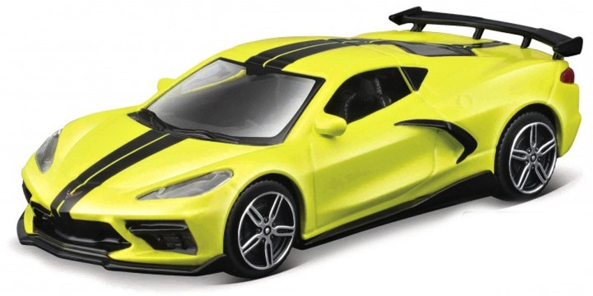 Kovové modely autíčka Bburago Chevrolet 2020 Corvette v žluté barvě a měřítku 1 : 43. Autíčko je vyrobeno z kovu a plastu.