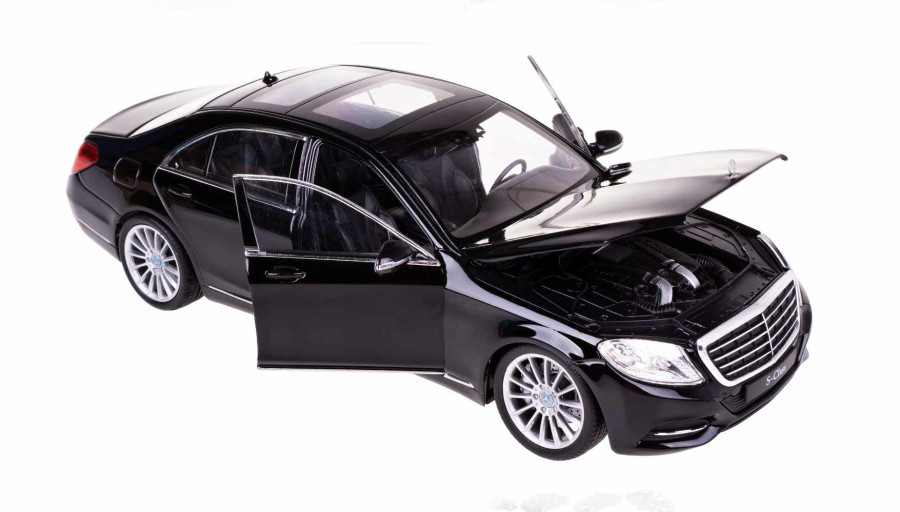 Kovový model auta Mercedes-Benz S-Class je měřítku 1:24. Model má detailní zpracování karoserie včetně interiétu vozu. Na modelu se otvírá přední dveře a kapotu motoru.