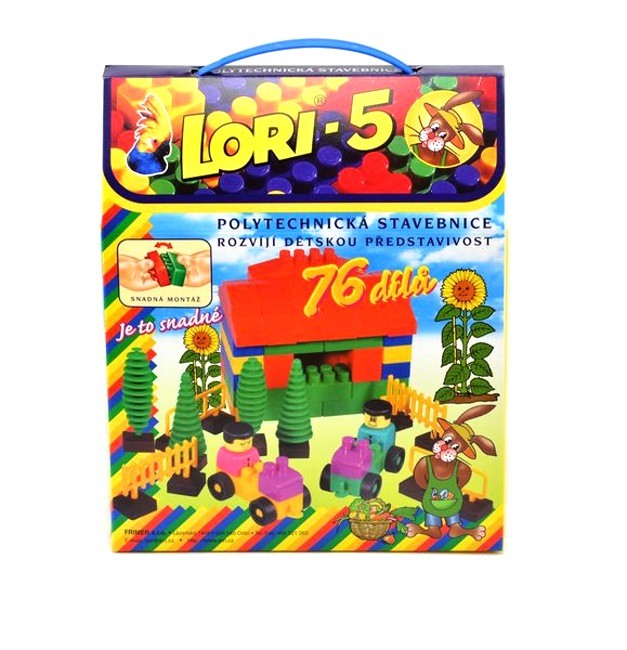 Stavebnice Lori 5 je polytechnická stavebnice obsahující 76 dílků. Balení satevbnice obsahuje 6 typů kostek, stříšky, vagónky, panáčci a stromečky.