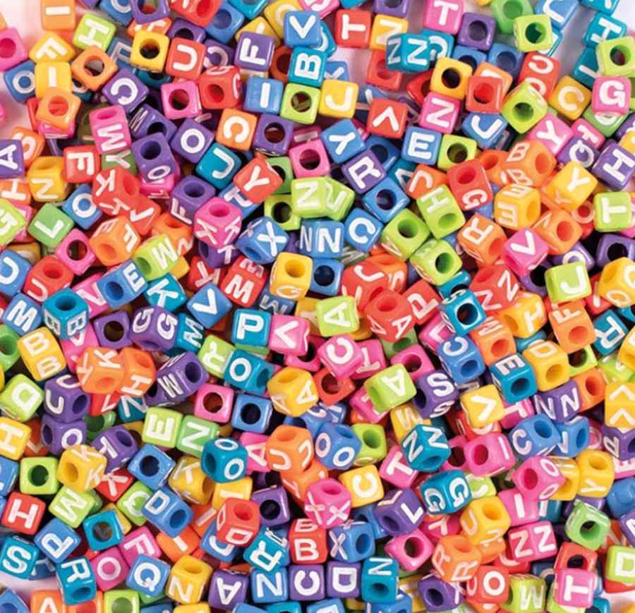 Barevné plastové korálky s písmenky jsou vhodné k další kreativní tvorbě. Plastové barevné korálky velikosti cca 7x7mm s širokým průvlekem. V balení naleznete 300 ks plastových barevných korálků.