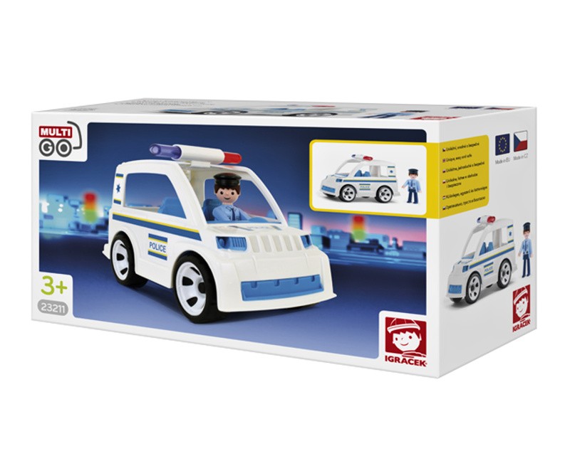 IGRÁČEK policista s autem a doplňky je česká hračka vyrábena českým výrobcem hraček a her.