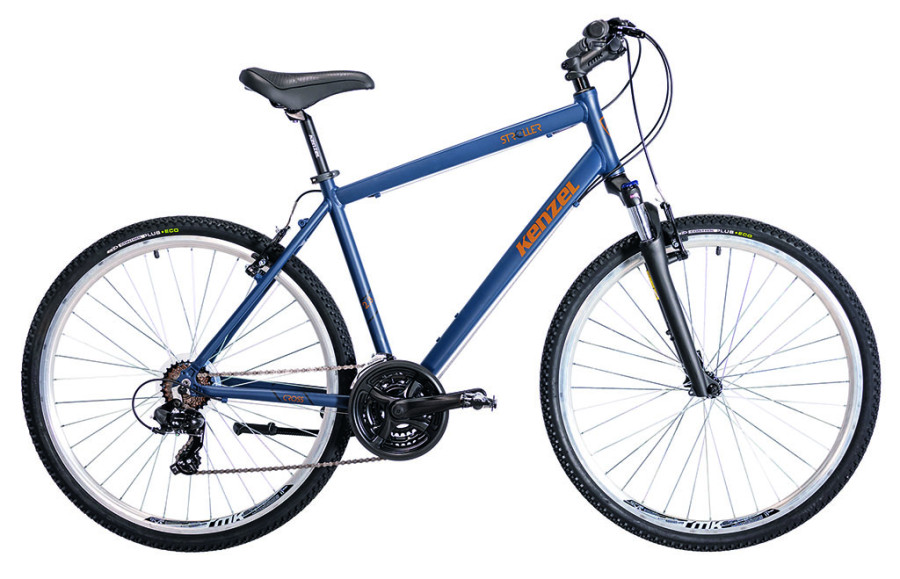 Kenzel Stroller Cross krosové kolo má aluminiový rám Kenzel ATF aluminium o velikosti 48 cm a kola o velikosti 28". Kolo má odpruženou přední vidlici, měniče Shimano Tourney a celkem 21 převodů.
