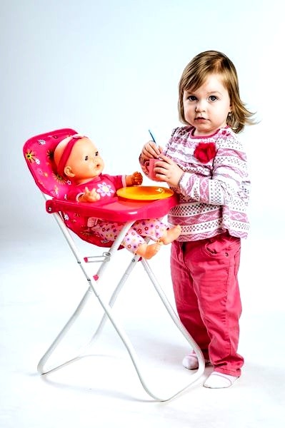 Nemá si vaše holčička kam posadit panenku? Nabízíme vám krásnou lehkou skládací židličku v růžových barvách. Panenku lze uložit do židličky a vaše dítě ji může lehce nakrmit.