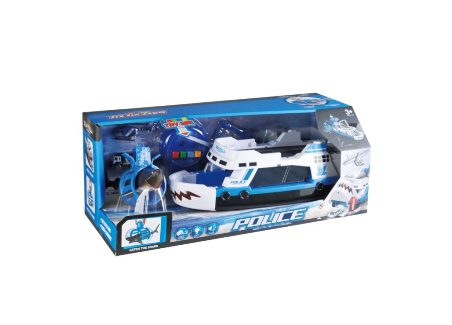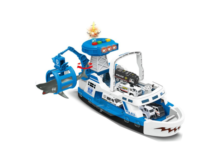 Hračka má zvuky policejního auta, ambulance, střelby a motoru. Loď je lehce přenosná díky své rukojeti.