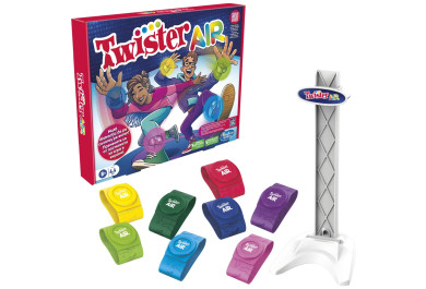 Tato veselá společenská hra obsahuje 8 barevných náramků Twister Air a stojánek, který je vhodný pro většinu smartphonů a tabletů. Chcete-li začít, stáhněte si nejdříve bezplatnou aplikaci Twister Air (zdarma ke stažení; mohou být účtovány poplatky za data a nákupy v aplikaci) a vložte chytré zařízení do přiloženého stojánku. Poté si hráči nasadí náramky na zápěstí a kotníky a zábava může začít!