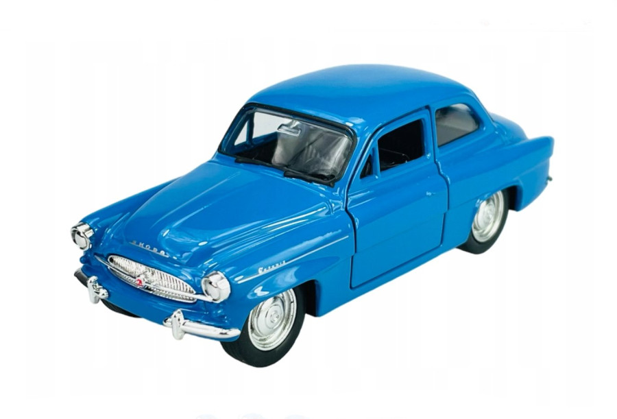 Autíčko Škoda Octavia 1959 modré barvy v měřítku 1:34 značky Welly s plastovým podvozkem a kovovou karoserií.