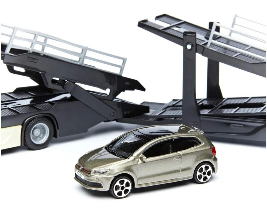 Bburago Mercedes Benz Actros autotransport a VW Polo 1:43