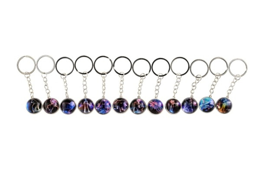 Přívěšek na klíče skleněná kulička znamení zvěrokruhu, 8x6cm