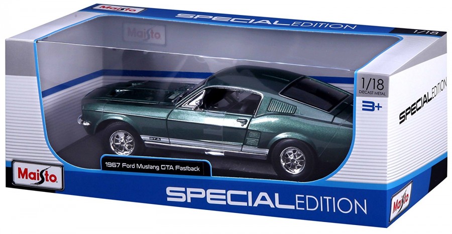 Kovový model auta Ford Mustang Fastback (1967) je v měřítku 1:18. Model má detailní zpracování karoserie i doplňky uvnitř vozu.