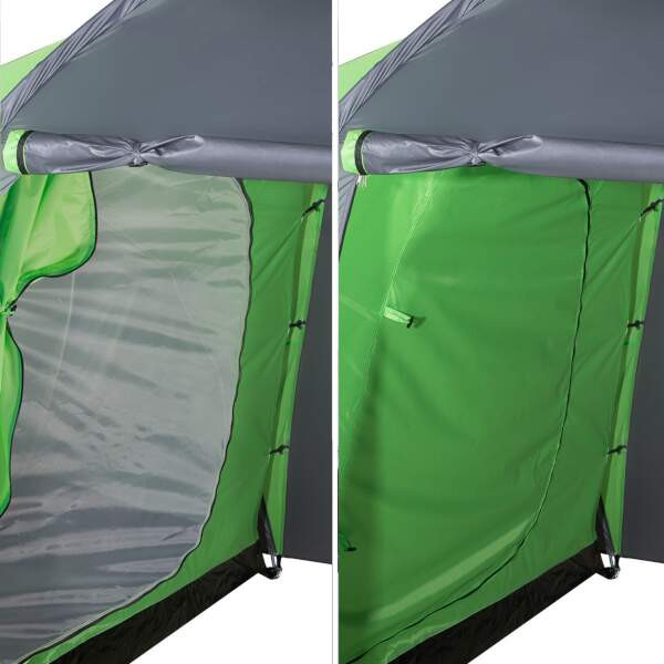 Do stanu se vstupuje přes předsíňku z obou stran. Vchod se otevírá pomocí dvou samostatných zipů a otevřený panel lze buď srolovat a zajistit poutky a nebo jej pomocí dodávaných prutů použít jako stříšku.