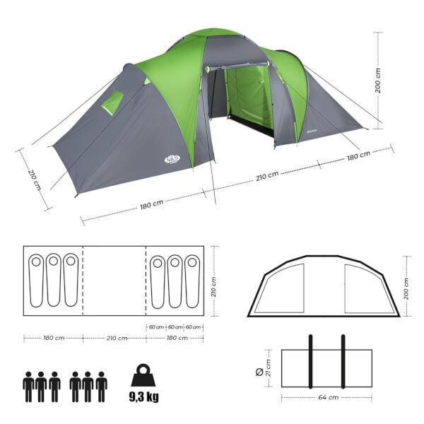 NILS Camp NC6031 Highland je 6-ti osobový, rodinný stan, který oceníte během teplých letních nocí na zahradě a nebo při pobytu v kempu. Stan Highland je dvoupl´šťový a skládá se z prostorné předsíňky a dvou ložnic.