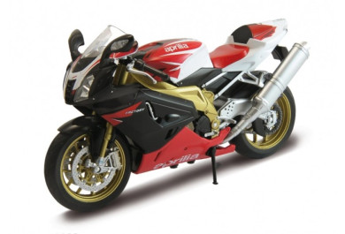 Aprilia RSV 1000R Factory je hezký model motorky v měřítku 1:10 vyrobený z kovových a plastových dílů. Motocykl má délku 19 cm a je přišroubována na černém plastovém podstavci. Motorka má otočná řídítka, odpružená zadní vidlici.