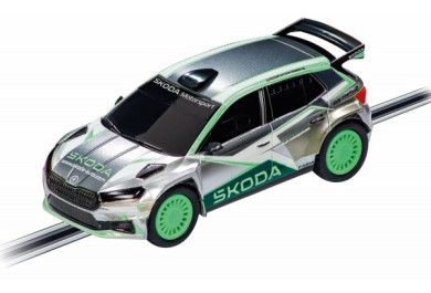 Model auta Škoda Fabia RS Rally 2 pro řadu autodráhy Carrera GO GO+ a GO+ v měřítku 1:43. Model auta je vybaven dvojitými kontaktní kartáčky, magnetem a vodící lištu.