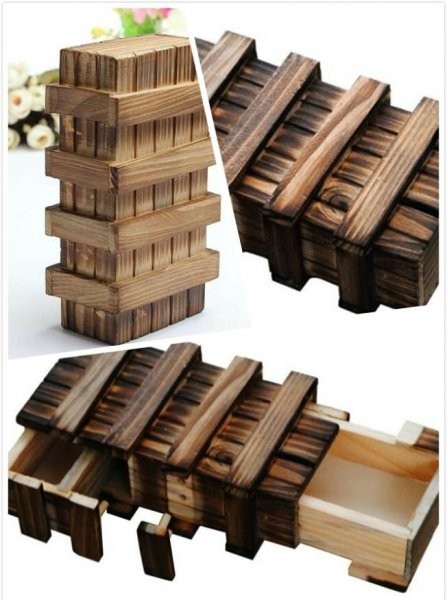 Dřevěný hlavolam tajná schránka je docela zábavný hlavolam vhodný jako dárek, a když ji naplníte třeba penězi, pro obdarovaného, tak se určitě postaráte na narozeninové párty o dobrou zábavu.