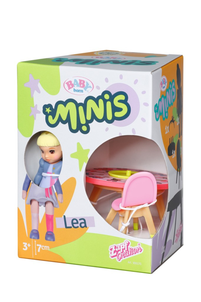 Všechny panenky BABY born Minis slaví společně narozeniny! Posadily se kolem roztomilého narozeninového stolečku, který doplňují tři židle a růžový dort. Narozeninová mini panenka Lea si nasadila svou oblíbenou čelenku s růžovou holubičkou a těší se na skvělou oslavu se všemi kamarády.