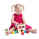 Tato vkládací krabička je vyrobena tak, aby dítě mohlo prostrčit daný tvar pouze příslušným otvorem. Žádný z obsažených tvarů neprojde jiným otvorem, než kterým je určeno.