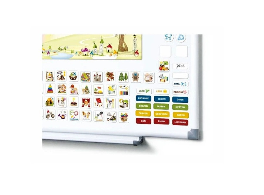 Děti se zábavnou formou učí plánovat své oblíbené činnosti, úkoly - určovat roční období, měsíce, dny v týdnu nebo počasí - poznávat barvičky, základní tvary - hodnotit svou náladu a spoustu další zábavy. Všechny magnetky mají zaoblené rohy pro snadnější odebírání a přesun magnetek v malých ručičkách.
