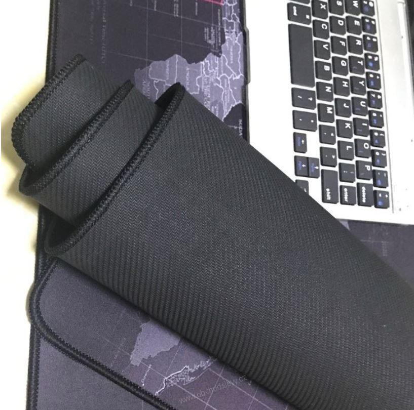 Stylová podložka pod myš velikosti XXL je vhodná nejen pod myš, ale také pod klávesnici. Podložka má odstíny tmavé barvy a vyobrazuje všechny světadíly.