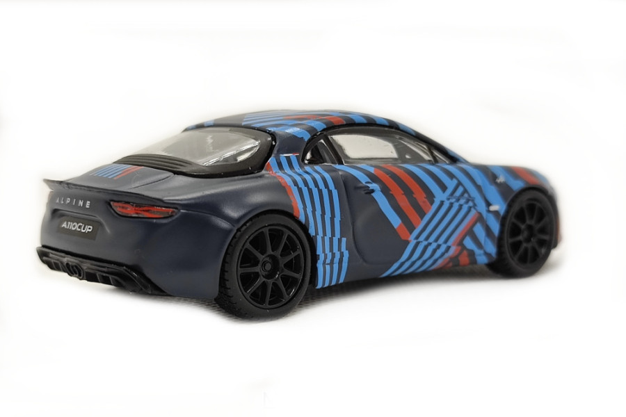 Kovový model auta Renault Alpine A110 France GP 2022 v modré barvě od výrobce hraček Bburago v měřítku 1 : 43.