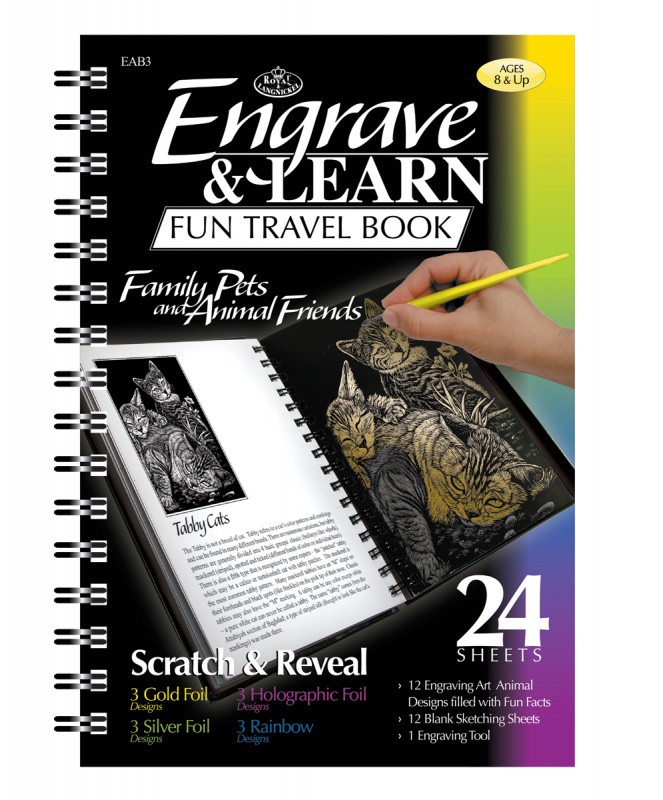 ROYAL and LANGNICKEL je sada škrabacích obrázků s motivem Zvířátek Mazlíčků. Vyškrabte si krásné obrázky. Stačí jen když odstraníte ochrannou folii. Přiloženým škrabákem vyškrabejte do obrázku Váš motiv. A máte hotovo! Ke každému škrabacímu obrázku je anglický popis pro zlepšení Vaší angličtiny. Praktický kroužkový blok je ideální na cesty.