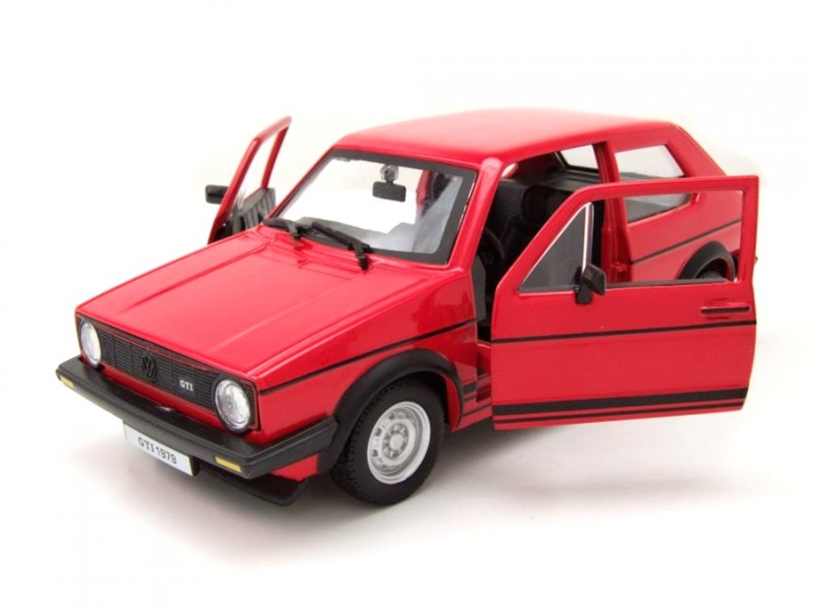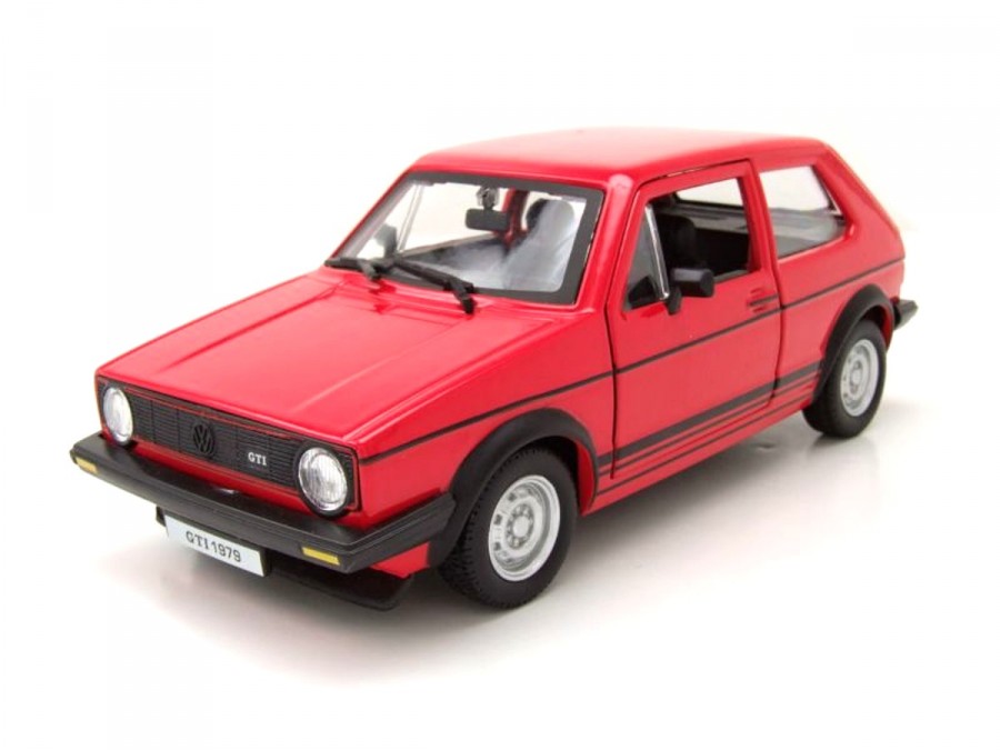 Kovový model auta VW Golf 1979 MK1 v měřítku 1:24 značky Bburago. Model má detailní zpracování karoserie včetně interiéru automobilu. Na modelu se otvírají dveře.