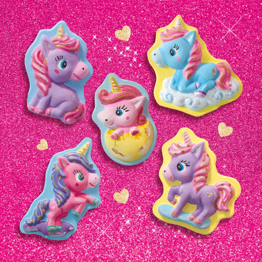 S touto sadou od SES můžete vyrobit 10 roztomilých figurek baby jednorožců pomocí sádry. Sádru nalijte do formy, nechte zaschnout a natřete ji dle své fantazie.