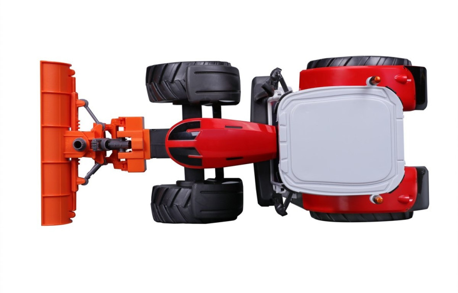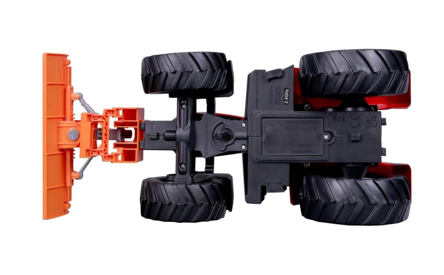 Přední a zadní konektory, řízení předních kol s detaily dezénu pneumatik. Přední radlice se dá natáčet ze strany na stranu.