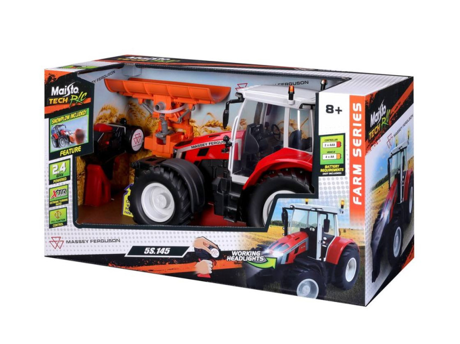 Traktor Massey Ferguson s radlicí a dálkovým ovládáním 2,4 GHz. Extrémní poměr otáčení, plně funkční ovládání, funkční světlomety. Pistolová rukojeť pro snadné ovládání.